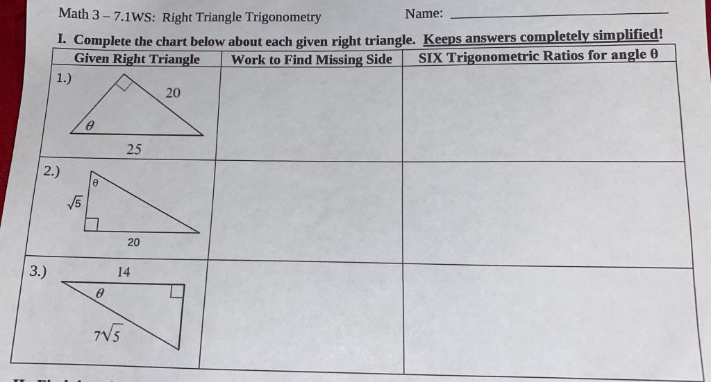 Integrated Mathematics Ii from demo.pdfslide.net Chapter 2 the trigonometric functions 2.1 right triangle trigonometry 2.1 exercises 2.2 determining cosine and sine values from the unit circle 2.2 exercises 2.3 the six circular functions 2.3 exercises 2.4 verifying trigonometric identities 2.4 exercises 2.5 beyond the unit. For a more detailed exploration of this section along with additional examples and exercises, see the tutorial entitled using trigonometry to find missing sides of right triangles. 12.5 conic sections in polar coordinates. After completing this section, you should be able to do the following: Right triangle trigonometry multiple choice choose the best answer. Chapter 7 right triangles and trigonometry 341 geometric mean • find the geometric mean between two numbers. Rigt triangle trigonometry you sould know te rigt. Recall that a right triangle is a triangle with exactly one right angle.